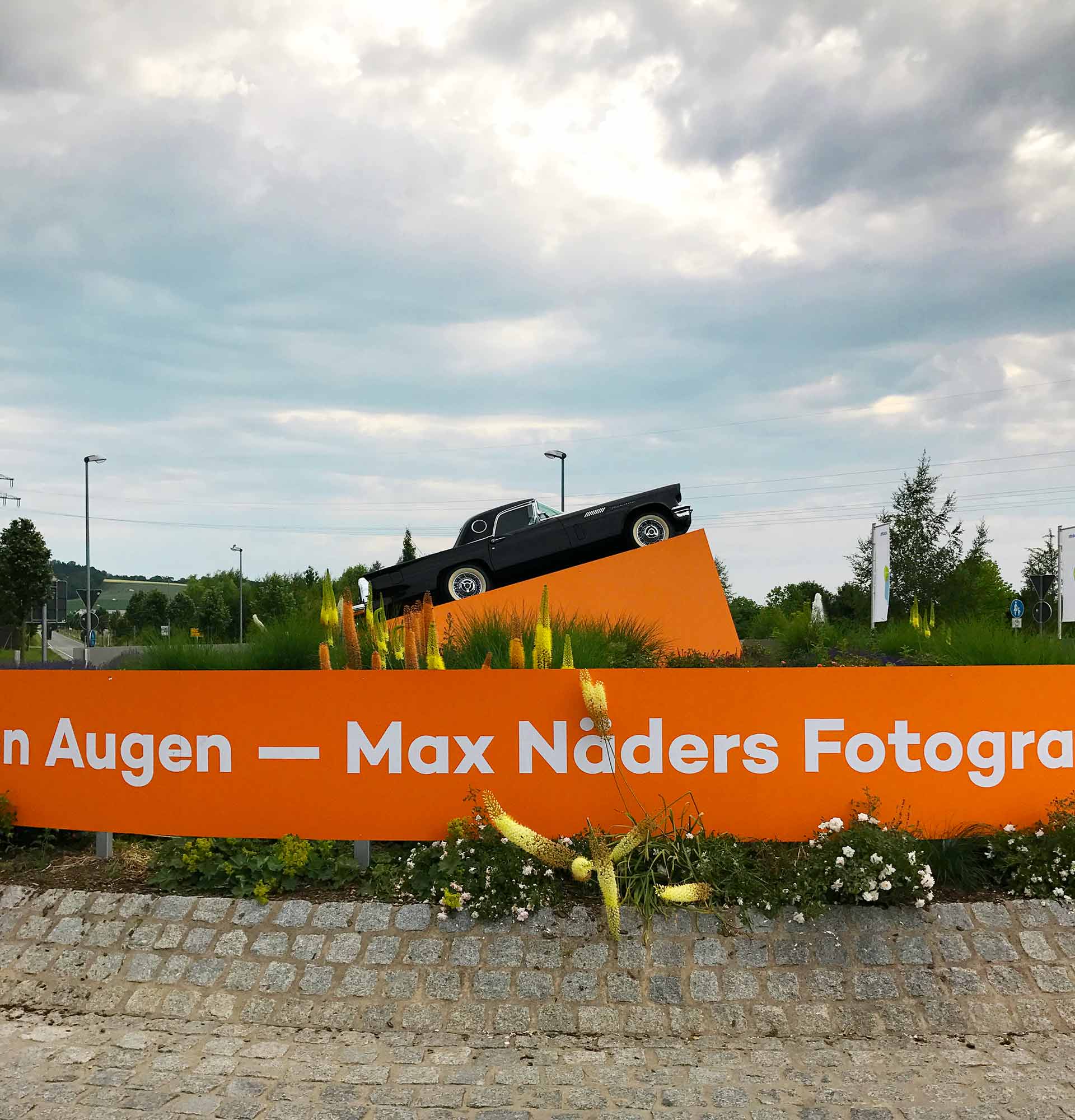 Die Ausstellung Mit offenen Augen. Max Näders Fotografien der Fünfziger Jahre in der Kunsthalle HGN erzählte vom Amerikabild der Westdeutschen in Zeiten des Wirtschaftswunders. Drei Raumkörper dominierten mit großformatigen Bildern die zentrale Halle, im städtischen Raum setzte ich zwei Oldtimer als Eyecatcher in Szene.